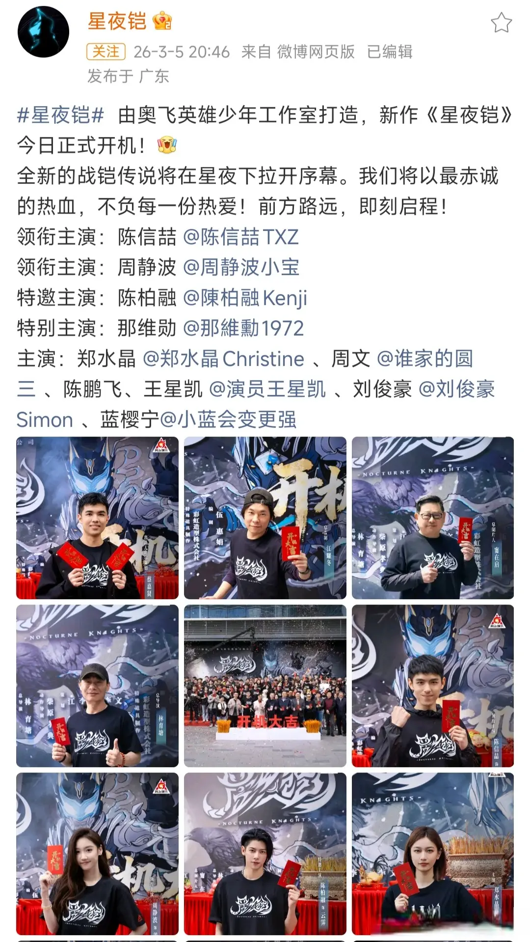 3月5日,真人特摄《星夜铠》宣布正式开机,